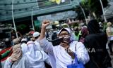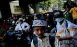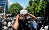 Massa aksi Reuni 212 memadati kawasan Tanah Abang, Jakarta, Kamis (2/12). Massa membubarkan diri sekitar pukul 10.00 WIB setelah berusaha melakukan aksi damai di kawasan Monumen Nasional. Berdasarkan pantauan sejumlah petugas gabungan dari TNI, Polri melakukan penjagaan ketat dibeberapa titik lokasi seperti kawasan Patung Kuda, Jalan Thamrin, Gambir, dan kawasan Istana Merdeka serta mengimbau massa aksi untuk menghindari kerumunan pada masa pandemi Covid-19. Republika/Thoudy Badai (FOTO : Republika/Thoudy Badai)