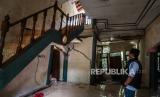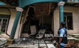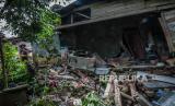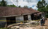 REPUBLIKA.CO.ID, SERANG -- Warga melihat kondisi rumah yang rusak akibat pergerakan tanah di Desa Cikotok, Lebak, Banten, Rabu (1/12/2021). Curah hujan yang tinggi selama tiga hari di daerah itu menyebabkan delapan rumah di Desa Cikotok rusak akibat pergerakan tanah, dua di antaranya rusak berat dan mengakibatkan 11 kepala keluarga mengungsi.