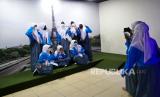Pengunjung mencoba permainan interaktif meniti besi Menara Eiffel saat peresmian zona jelajah baru Menara Eiffel di Taman Pintar, Yogyakarta, Kamis (2/12). Zona  jelajah Menara Eiffel ini untuk menambah wawasan pengunjung terkait Menara Eiffel. Selain itu juga untuk mempererat hubungan antara Indonesia dengan Perancis. (FOTO : Wihdan Hidayat / Republika)