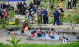 Anak-anak bermain di kolam dangkal Wetland Park Cisurupan yang baru diresmikan saat Hari Bhakti PU oleh Pemkot Bandung di Kelurahan Cisurupan Kecamatan Cibiru, Kota Bandung, Jumat (3/12). Wetland Park Cisurupan adalah konsep kolam retensi yang dapat dimanfaatkan menjadi destinasi wisata. (FOTO : Edi Yusuf/Republika)