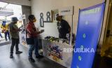 Direktur Utama Bank Mandiri Darmawan Junaidi (kedua kiri) bersama Wakil Gubernur DKI Jakarta Ahmad Riza Patria (kedua kanan) dan Staf Ahli Bidang Keuangan dan Pengembangan UMKM Kementerian BUMN Loto Srinaita Ginting (kanan) melihat produk yang dijual saat Festival Diskon Nasional (FDN) 2021 di M Bloc Space, Jakarta, Sabtu (4/12). FDN 2021 bertemakan Jakarta Punya Diskon yang berlangsung hingga 31 Desember 2021 itu melibatkan 12 BUMN, lebih dari 50 E-Commerce, 1.000 pengusaha lokal dan 50.000 UMKM, sebagai upaya mendorong minat masyarakat untuk berbelanja produk lokal. Republika/Putra M. Akbar (FOTO : Republika/Putra M. Akbar)