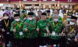 REPUBLIKA.CO.ID,BANDUNG -- Ketua Umum ICMI (Ikatan Cendekiawan Muslim se-Indonesia) Jimly Asshiddiqie bersama Ketua Dewan Pakar ICMI Zulkifli Hasan berfoto dengan pengurus ICMI lainnya yang hadir saat saat Muktamar VII dan Milad ke-31 ICMI di Hotel Grand Asrillia, Kota Bandung, Sabtu (4/12).