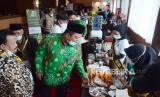Peserta menikmati kopi Jawa Barat gratis pada bazar gelaran Muktamar VII dan Milad ke-31 ICMI di Hotel Grand Asrillia, Kota Bandung, Sabtu (4/12). Acara tersebut bertajuk Membangun Indonesia Bermartabat Menuju Indonesia Emas 2045, berlangsung 4-6 Desember 2021. (FOTO : Edi Yusuf/Republika)