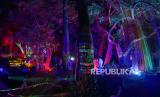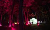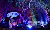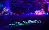 Suasanai obyek wisata Hutan Menyala di Taman Hutan Rakyat Ir H Djuanda, Bandung, Sabtu (5/12). Hutan Menyala memberikan pengalaman bertualang di dalam hutan dipadukan dengan video mapping, sinar LED dan cahaya fluoresence yang berpendar di kegelapan. (FOTO : Republika/Yogi Ardhi)