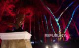 Patung Ir H Juanda di tengah taman obyek wisata Hutan Menyala di Taman Hutan Rakyat Ir H Djuanda, Bandung, Sabtu (5/12). Hutan Menyala memberikan pengalaman bertualang di dalam hutan dipadukan dengan video mapping, sinar LED dan cahaya fluoresence yang berpendar di kegelapan. (FOTO : Republika/Yogi Ardhi)