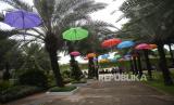 Pengunjung melihat karya seni di Festival #IniJakarta, di Lapangan Banteng, Jakarta, Ahad (05/12/2021). Festival #IniJakarta merupakan kolaborasi antarwarga dan pemerintah provinsi  guna menyebar luaskan sekaligus membumikan identitas Kota Jakarta.  (FOTO : ANTARA/Akbar Nugroho Gumay/hp.)