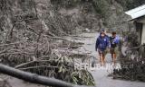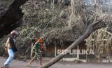 REPUBLIKA.CO.ID, Dua orang pejalan kaki melintasi jalur Malang-Lumajang yang terhalang pohon roboh di Pronojiwo, Lumajang, Jawa Timur, Minggu (5/12/2021). Derasnya guyuran hujan abu vulkanik akibat erupsi gunung Semeru membuat pohon di sepanjang jalur tersebut roboh dan menghalangi jalan.