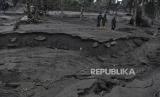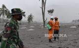 REPUBLIKA.CO.ID, LUMAJANG -- Tim SAR gabungan menyusuri jalur material guguran awan panas Gunung Semeru saat operasi pencarian korban di Desa Sumberwuluh, Lumajang, Jawa Timur, Senin (6/12/2021).