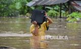 REPUBLIKA.CO.ID, LOMBOK BARAT -- Seorang laki-laki membawa tas melewati banjir di Dusun Kebon Lauk, Desa Sesela, Kecamatan Gunungsari, Lombok Barat, NTB, Senin (6/12/2021). Banjir yang terjadi karena hujan lebat dan luapan air Sungai Meninting di wilayah Gunungsari tersebut mengakibatkan ratusan rumah warga terendam.