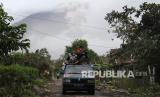 REPUBLIKA.CO.ID, LUMAJANG -- Sejumlah warga bergegas menuju ke lokasi pengungsian saat awan panas kembali meluncur dari kawah Gunung Semeru di Desa Supiturang, Pronojiwo, Lumajang, Jawa Timur, Senin (6/12/2021). Badan Penanggulangan Bencana Daerah (BPBD) setempat meminta warga untuk segera menjauhi kawasan terdampak karena Gunung Semeru kembali menunjukkan peningkatan aktivitas dengan mengeluarkan awan panas disertai kepulan material vulkanik. ANTARA FOTO/Ari Bowo Sucipto