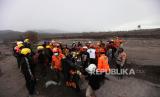 REPUBLIKA.CO.ID,LUMAJANG -- Sejumlah relawan menaiki kendaraan saat akan melakukan evakuasi korban yang diduga masih tertimbun longsoran material awan panas di Dusun Curah Kobokan, Desa Supitarang, Kabupaten Lumajang, Senin (6/12).