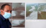 Petugas berdiri di depan sejumlah gambar aktivitas Gunung Semeru dari pos pantau di desa Sumberwuluh, Candipuro, Lumajang, Jawa Timur, Senin (6/12/2021). Gunung Semeru kembali mengeluarkan awan panas dengan jarak luncur sejauh 2,5 kilometer yang mengarah ke Curah Besuk Kobokan. (FOTO : ANTARA/Umarul Faruq)