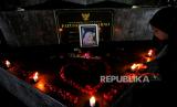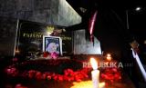 REPUBLIKA.CO.ID,BLITAR -- Peserta aksi menaburkan bunga di atas foto almarhumah Novia Widyasari saat aksi keprihatinan di Monumen Patung Bung Karno di Kota Blitar, Jawa Timur, Senin (6/12/2021) malam.