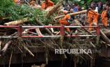 Sejumlah petugas Basarnas membersihkan material yang terbawa banjir untuk mencari korban banjir yang hilang di Dusun Batulayar Utara, Desa Batulayar Barat, Kecamatan Batulayar, Lombok Barat, NTB, Selasa (7/12/2021). Menurut data BPBD NTB sebanyak empat korban meninggal dunia akibat banjir bandang disertai tanah longsor di Dusun Batulayar Utara dan satu korban masih hilang serta satu orang mengalami patah kaki akibat terhempas material banjir bandang. (FOTO : Antara/Ahmad Subaidi)