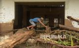 Seorang laki-laki berada di atas tumpukan kayu yang terbawa banjir di Dusun Batulayar Utara, Desa Batulayar Barat, Kecamatan Batulayar, Lombok Barat, NTB, Selasa (7/12/2021). Menurut data BPBD NTB sebanyak empat korban meninggal dunia akibat banjir bandang disertai tanah longsor di Dusun Batulayar Utara dan satu korban masih hilang serta satu orang mengalami patah kaki akibat terhempas material banjir bandang. (FOTO : Antara/Ahmad Subaidi)