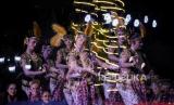Foto eksposur ganda sejumlah penari menampilkan tarian Bedhaya Sapta pada acara Gempita Budaya Jawa Barat - Yogyakarta di depan Gedung Sate, Jalan Diponegoro, Kota Bandung, Selasa (7/12). Acara tersebut digelar sebagai bentuk silaturahmi guna menciptakan hubungan yang harmonis antara Jawa Barat dan Daerah Istimewa Yogyakarta dan membangun relasi budaya serta upaya promosi potensi pariwisata. Foto: Republika/Abdan Syakura (FOTO : REPUBLIKA/ABDAN SYAKURA)