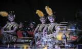 Sejumlah penari menampilkan tarian Bedhaya Sapta pada acara Gempita Budaya Jawa Barat - Yogyakarta di depan Gedung Sate, Jalan Diponegoro, Kota Bandung, Selasa (7/12). Acara tersebut digelar sebagai bentuk silaturahmi guna menciptakan hubungan yang harmonis antara Jawa Barat dan Daerah Istimewa Yogyakarta dan membangun relasi budaya serta upaya promosi potensi pariwisata. (FOTO : REPUBLIKA/ABDAN SYAKURA)