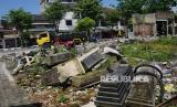 Kondisi makam tidak terurus saat pembongkaran Makam Jopraban, Kemantren Wirobrajan, Yogyakarta, Rabu (8/12). Pemerintah Kota Yogyakarta alam mengalihfungsikan Makam Jopraban menjadi ruang terbuka hijau (RTH) publik dan fasilitas umum. Makam ini sudah ada 1985, menurut tokoh masyarakat selama 30 tahun terakhir ini tidak digunakan lagi untuk pemakaman. (FOTO : Wihdan Hidayat / Republika)