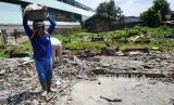 Pekerja membawa material bongkaran saat pembongkaran Makam Jopraban, Kemantren Wirobrajan, Yogyakarta, Rabu (8/12). Pemerintah Kota Yogyakarta alam mengalihfungsikan Makam Jopraban menjadi ruang terbuka hijau (RTH) publik dan fasilitas umum. Makam ini sudah ada 1985, menurut tokoh masyarakat selama 30 tahun terakhir ini tidak digunakan lagi untuk pemakaman. (FOTO : Wihdan Hidayat / Republika)