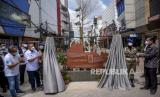 Wali Kota Bandung Oded M Danial (kedua kiri) didampingi Wakil Wali Kota Bandung Yana Mulyana (kiri) menarik tirai saat peluncuran kawasan Alun-Alun Kota Bandung di Jalan Dalem Kaum, Kota Bandung, Rabu (8/12). Pemerintah Kota Bandung melakukan penataan kawasan Alun-alun Kota Bandung yang meliputi Jalan Kepatihan, Jalan Dalem Kaum, Jalan Viaduct dan area Cikapundung Riverspot guna memberikan kenyamanan kepada masyarakat serta upaya menjadikan Kota Bandung sebagai kota ramah, indah dan nyaman. Foto: Republika/Abdan Syakura (FOTO : REPUBLIKA/ABDAN SYAKURA)