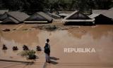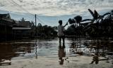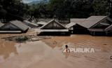 Warga beraktivitas di area yang terendam banjir lahar dingin akibat erupsi Gunung Semeru di Dusun Kamar Kajang, Desa Sumberwuluh, Kecamatan Candipuro, Kabupaten Lumajang, Jawa Timur, Raby (8/12). Sebanyak kurang lebih 40 rumah terendam banjir lahar dingin erupsi Gunung Semeru dari luapan sungai Hilir Curah Kobokan. Menurut Joko warga terdampak, banjir lahar dingin mulai menggenangi Dusun Kamar Kajang Pukul 18.00 WIB. Akses jalan menuju Dusun Kamar Kajang masih tertutup material erupsi, sehingga menyulitkan proses evakuasi. (FOTO : Republika/Thoudy Badai)