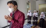 REPUBLIKA.CO.ID, BANDUNG -- Guru bersama siswa menunaikan Sholat Gaib untuk korban erupsi gunung Semeru di Darul Hikam Integrated School (DHIS) Primary, Jalan Brigjend Katamso, Kota Bandung, Rabu (8/12). Doa bersama dan Sholat Gaib sekaligus penggalangan dana tersebut sebagai wujud kepedulian siswa bagi korban erupsi gunung Semeru.
