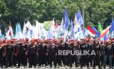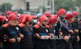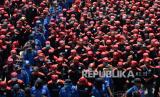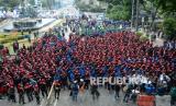REPUBLIKA.CO.ID, JAKARTA -- Pengunjuk rasa dari berbagai elemen buruh berunjuk rasa di kawasan Patung Arjuna Wiwaha, Jakarta, Rabu (8/12/2021). Dalam aksinya tersebut mereka meminta pemerintah dan DPR mencabut Undang-undang Nomor 11 Tahun 2020 tentang Cipta Kerja.