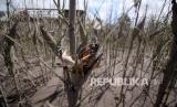 Lahan pertanian tomat tertimbun material guguran awan panas Gunung Semeru di Curah Koboan, Pronojiwo, Jawa Timur, Rabu (8/12/2021). Lahan pertanian di kawasan tersebut rusak dan gagal panen akibat letusan Gunung Semeru. (FOTO : Antara/Umarul Faruq)