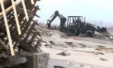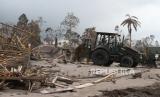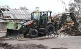 REPUBLIKA.CO.ID,LUMAJANG -- Anggota TNI dari Batalyon Zeni Tempur 5 Malang membersihkan reruntuhan rumah dengan alat berat di lokasi terdampak letusan gunung Semeru di Supiturang, Pronojiwo, Lumajang, Jawa Timur, Rabu (8/12/2021).