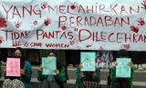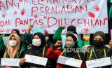 REPUBLIKA.CO.ID, BANDA ACEH -- Sejumlah aktivis perempuan Korps HMI-Wati menggelar aksi stop kekerasan dan pelecehan seksual terhadap perempuan di Lhokseumawe, Aceh, Kamis (9/12/2021). Dalam aksi tersebut mereka memprotes kejahatan pelecehan seksual yang masih sering terjadi terhadap perempuan serta mendesak aparat penegak hukum bertindak tegas terhadap pelaku kejahatan pelecehan seksual.