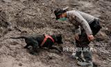 REPUBLIKA.CO.ID,LUMAJANG -- Anggota Kepolisian Unit Satwa K-9 melakukan pencarian korban dengan anjing pelacak di area tambang pasir Sungai Besuk Lanang di Dusun Curah Kobokan, Kecamatan Candipuro, Kabupaten Lumajang, Jawa Timur Selasa (7/12).