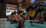 Sejumlah pesilat dari berbagai pergururan silat tampil pada acara Diskusi, Workshop dan Pertunjukan Pencak Silat di Pendopo DPRD Kota Cimahi, Jalan Dra Hj Djulaeha Karmita, Kota Cimahi, Kamis (9/12). Acara yang digelar secara dalam jaringan (daring) dan luar jaringan (luring) tersebut bertujuan untuk melestarikan tradisi pencak silat sekaligus memperingati tiga tahun pencak silat ditetapkan oleh UNESCO sebagai warisan budaya tak benda. Foto: Republika/Abdan Syakura (FOTO : REPUBLIKA/ABDAN SYAKURA)