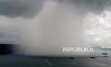 REPUBLIKA.CO.ID,PADANG -- Foto udara awan hujan terlihat di perairan Teluk Bayur, Padang, Sumatera Barat, Kamis (9/12/2021).