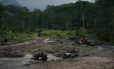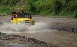 Wisatawan menggunakan jasa Jeep Merapi di Kali Kuning, Cangkringan, Sleman, D.I Yogyakarta, Kamis (9/12/2021). Pemkab Sleman mengingatkan masyarakat dan wisatawan untuk selalu waspada saat beraktivitas di sungai-sungai yang berhulu di Gunung Merapi menyusul ditetapkanya status tanggap darurat bencana lahar hujan Gunung Merapi sejak 4 Desember 2021. (FOTO : ANTARA/Andreas Fitri Atmoko)