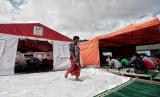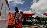 Warga kembali ke tenda pengungsi usai melaksanakan shalat Jumat di Mobile Masjid yang terparkir di posko pengungsian Penanggal, Kecamatan Candirpuro, klKabupaten Lumajang, Jawa Timur, Jumat (10/12). Keberadaan fasilitas masjid keliling atau mobile masjid tersebut dapat membantu pengungsi dan relawan dalam melaksanakan ibadah. Republika/Thoudy Badai (FOTO : Republika/Thoudy Badai)