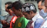 Pengungsi memanjatkan doa usai melaksanakan shalat Jumat di Mobile Masjid yang terparkir di posko pengungsian Penanggal, Kecamatan Candirpuro, klKabupaten Lumajang, Jawa Timur, Jumat (10/12). Keberadaan fasilitas masjid keliling atau mobile masjid tersebut dapat membantu pengungsi dan relawan dalam melaksanakan ibadah. Republika/Thoudy Badai (FOTO : Republika/Thoudy Badai)