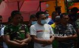 Pengungsi dan personel TNI melaksanakan shalat Jumat di Mobile Masjid yang terparkir di posko pengungsian Penanggal, Kecamatan Candirpuro, klKabupaten Lumajang, Jawa Timur, Jumat (10/12). Keberadaan fasilitas masjid keliling atau mobile masjid tersebut dapat membantu pengungsi dan relawan dalam melaksanakan ibadah. Republika/Thoudy Badai (FOTO : Republika/Thoudy Badai)