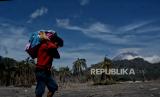 Warga membawa barang dari rumahnya yang tertimbun material guguran awan panas di Kampung Renteng, Desa Sumberluwuh, Candipuro, Kabupaten Lumajang, Jawa Timur, Jumat (10/12). Berdasarkan data dari Kantor Pencarian dan Pertolongan (SAR) Surabaya jumlah korban meninggal dunia pada Jumat (10/12) mencapai 43 orang dan 12 orang masih dinyatakan hilang. Republika/Thoudy Badai (FOTO : Republika/Thoudy Badai)