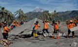 Petugas gabungan melakukan pencarian korban di Kampung Renteng, Desa Sumberluwuh, Candipuro, Kabupaten Lumajang, Jawa Timur, Jumat (10/12). Berdasarkan data dari Kantor Pencarian dan Pertolongan (SAR) Surabaya jumlah korban meninggal dunia pada Jumat (10/12) mencapai 43 orang dan 12 orang masih dinyatakan hilang. Republika/Thoudy Badai (FOTO : Republika/Thoudy Badai)