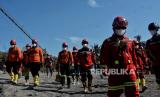 Petugas gabungan saat akan melakukan pencarian korban di Kampung Renteng, Desa Sumberluwuh, Candipuro, Kabupaten Lumajang, Jawa Timur, Jumat (10/12). Berdasarkan data dari Kantor Pencarian dan Pertolongan (SAR) Surabaya jumlah korban meninggal dunia pada Jumat (10/12) mencapai 43 orang dan 12 orang masih dinyatakan hilang. Republika/Thoudy Badai (FOTO : Republika/Thoudy Badai)