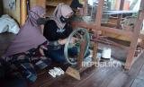 Perajin akar wangi memintal benang saat membuat kerajinan akar wangi dengan alat tenun tradisional di desa Sukalaksana, Kecamatan Samarang, Kabupaten Garut, Kamis (9/12). Akar wangi nerupakan salah satu komoditas unggulan Garut. Akar wangi biasa dibuat menjadi berbagai kerajinan tangan dan dijual mulai harga puluhan ribu hingga ratusan ribu rupiah tergantung bentuk dan ukuran. (FOTO : Edi Yusuf/Republika)