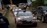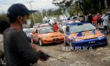 Sejumlah mobil peserta Danau Toba Rally 2021 bersiap mengikuti open ceremony kejuaraan nasional putaran I & II di Hutan Tanaman Industri Toba Pulp Lestari (TPL), Aek Nauli, Simalungun, Sumut, Jumat (10/12). Kejuaraan Danau Toba Rally 2021 tersebut akan digelar besok Sabtu (11/12) dan Ahad (12/12) yang diharapkan mampu memberikan nilai positif bagi perekonomian masyarakat Sumatera Utara, sekaligus sebagai semangat baru bagi kebangkitan destinasi pariwisata pasca pandemi Covid-19.Prayogi/Republika (FOTO : Prayogi/Republika.)