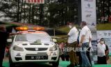 Wakil Gubernur Sumatera Utara Musa Rajekshah melakukan Flag Off Opening Ceremony Danau Toba Rally 2021 kejuaraan nasional putaran I & II di Hutan Tanaman Industri Toba Pulp Lestari (TPL), Aek Nauli, Simalungun, Sumut, Jumat (10/12). Kejuaraan Danau Toba Rally 2021 tersebut akan digelar besok Sabtu (11/12) dan Ahad (12/12) yang diharapkan mampu memberikan nilai positif bagi perekonomian masyarakat Sumatera Utara, sekaligus sebagai semangat baru bagi kebangkitan destinasi pariwisata pasca pandemi Covid-19. (FOTO : Prayogi/Republika.)