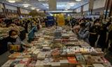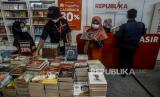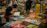 Pengunjung memilih buku pada pameran Indonesia International Book Fair (IIBF) 2021 di Jakarta Convention Center (JCC), Senayan, Jakarta, Sabtu (11/12). Ikatan Penerbit Indonesia (IKAPI) menggelar IIBF 2021 yang menghadirkan jutaan eksemplar buku dari 30 ribu judul dari penerbit lokal dan internasional hingga Ahad (12/12). (FOTO : Republika/Putra M. Akbar)