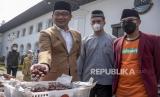 Gubernur Jawa Barat Ridwan Kamil menunjukkan komoditas hortikultura saat acara pelepasan ekspor perdana produk pesantren One Pesantren One Product (OPOP) ke Dubai di Gedung Sate, Jalan Diponegoro, Kota Bandung, Senin (13/12). Sebanyak 600 kilogram manggis, 300 kilogram rambutan, 200 kilogram salak dan 50 kilogram jengkol produk hortikultura dari pondok pesantren Al Ittifaq serta berbagai produk fesyen dari pondok pesantren Daarut Tauhid di ekspor ke Dubai. (FOTO : REPUBLIKA/ABDAN SYAKURA)