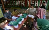 REPUBLIKA.CO.ID,GOWA -- Warga melakukan pendaftaran saat akan mengikuti wisata vaksin di Wisata Kebun, Kabupaten Gowa, Sulawesi Selatan, Senin (13/12/2021).
