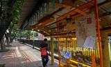 REPUBLIKA.CO.ID, JAKARTA -- Pejalan kaki melintas di dekat papan informasi tentang kawasan Menteng di Halte Museum Proklamasi, Jakarta, Senin (13/12).