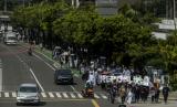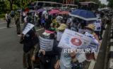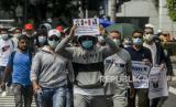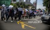 Sejumlah pencari suaka melakukan longmarch menuju Kedutaan Besar Kanada di Jakarta, Senin (13/12). Pada aksinya mereka meminta keadilan dalam Hak Asasi Manusia serta menuntut UNHCR terkait kejelasan status penempatan pencari suaka di negara tujuan. (FOTO : Republika/Putra M. Akbar)