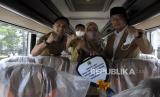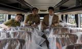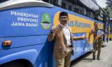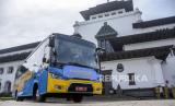 REPUBLIKA.CO.ID, BANDUNG -- Bus operasional bagi buruh berada di halaman Gedung Sate, Bandung, Jawa Barat, Senin (13/12/2021). Pemerintah Provinsi Jawa Barat memberikan bus operasional bagi buruh atau karyawan kepada dua kepala daerah yaitu Kabupaten Bandung Barat dan Kabupaten Indramayu guna meningkatkan pelayanan transportasi pekerja migran dan pekerja buruh.