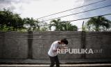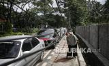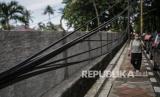 REPUBLIKA.CO.ID, TANGERANG -- Seorang pejalan kaki melintas di trotoar yang terdapat kabel menjuntai di Jalan TMP Taruna, Kota Tangerang, Banten, Senin (13/12/2021).